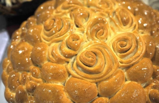 Priprema – U mlako mleko staviti kvasac, šećer i jednu kašiku brašna i ostaviti da kvasac nadođe. Zatim treba izmešati brašno sa solju, dodati puter izrezan na listiće, žumanca i nadošao kvasac. Zamesiti glatko testo, dobro rukama obraditii i ostaviti na toplom mestu, da nadođe. Nadošlo testo još jednom obraditi rukama, odvojiti deo za ukrašavanje, a ostatak oblikovati u pogaču i staviti u podmazanu tepsiju. Od odvojenog testa može se isplesti kika i staviti oko ivice pogače. Mogu se napraviti i neki drugi ukrasi ili gornji sloj našarati viljuškom.
