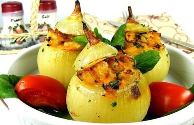 Ovim filom napunite luk, poredajte ga u vatrostalnu posudu, poprskajte uljem, dodajte malo vode i pecite u rerni zagrejanoj na 200 C, 30 minuta.