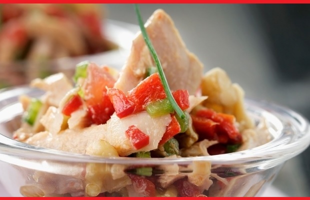 Potrebne namirnice – 1 kg fileta oslića, 350 g krompira, 100 g šargarepe, 200 g kiselih krastavčića, 300 ml majoneza, 1 dl belog vina, so, biber iperšunov list. Priprema – Ribu obarite u slanoj vodi, odvojite od kostiju i isitnite na komadiće. Krompir i šargarepu obarite i isecite.