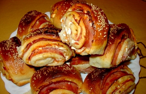 Seći na rolatiće širine 5-8 cm ili trouglove. Isečene rolatiće ili trouglove redati u nepodmazan pleh, sa većim razmakom sa svih strana, jer će testo narasti. Ostaviti rolate da narastu u plehu dok se greje rerna, a za to vreme ih premazati žumancetom, razmućenim sa vrlo malo mleka i ulja, pa svaku posuti susamom i krupnom morskom solju.
