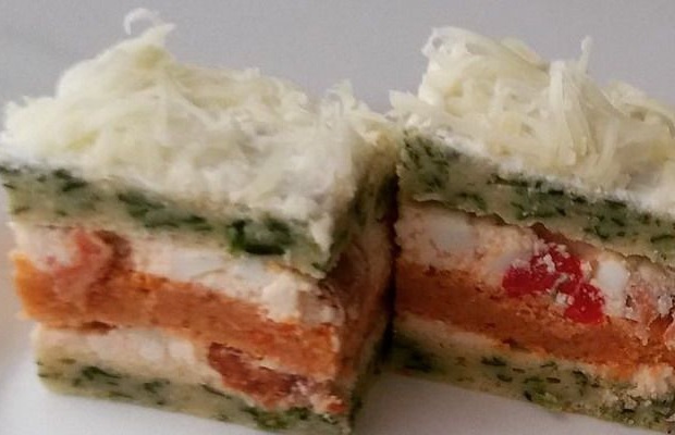 Priprema – Za zelenu koru umutiti belanca i so, pa dodati žumanca, ulje, jogurt, brašno, prašak za pecivo i odmrznut i oceđen spanać. Smesu izliti u kalup (27×24), obložen papirom za pečenje i peći u rerni zagrejanoj na 200 stepeni oko 15 minuta. Na isti način pripremiti još jednu zelenu koru.