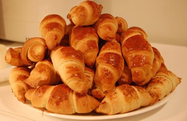 Uvijte svaku kiflicu i poredajte ih na nepodmazan i hladnom vodom ispran pleh. Pecite 25 minuta u rerni zagrejajnoj na 200 stepeni. Gotove kiflice, ako želite, pospite vanilinim šećerom dok su još vruće.
