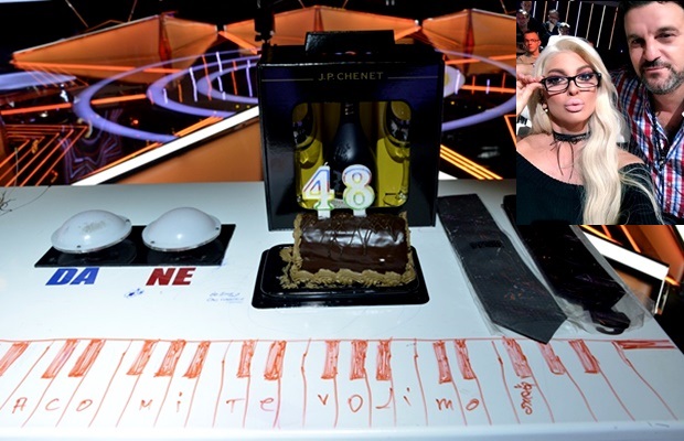 Svi u publici su stajali i pevali rođendansku pesmu. Stigla je torta, viski, vino, šampanjac, razni pokloni, a Aca je bio oduševljen.