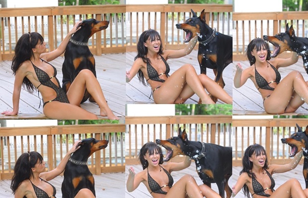 Na svom Fejsbuk profilu, starleta Stanija Dobrojević objavila je fotografije kako mazi dobermana, koji u jednom momentu postaje agresivan i počinje da laje. Najpre je bila iznenađena zbog reakcije psa.