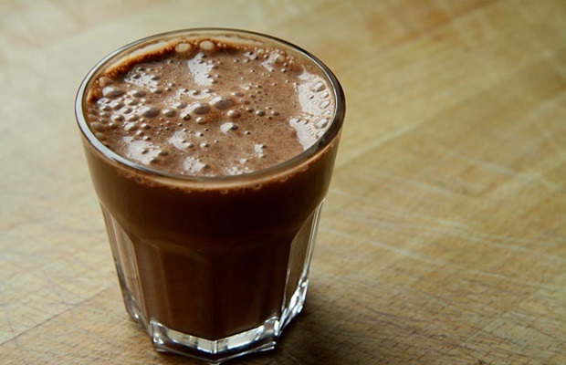 Pomešajte šolju mleka, dve kašike kakaoa u prahu, jednu kašiku meda, jednu kašičicu ekstrakta vanile i prstohvat soli.