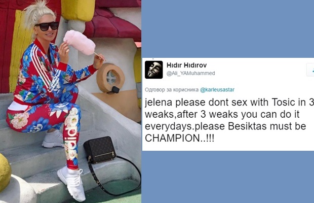 -“Jelena, nemoj da imaš seks sa Duškom u naredne tri nedelje. Posle toga možeš da ga imaš svakodnevno. Molim te, Bešiktaš mora da bude šampion”, – napisao je korisnik ‘Tvitera’, koji je očigledno navijač Bešiktaša.