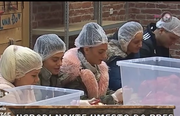 U rijalitiju ‘Zadruga’ u toku je ‘specijalna nedelja’ koju je proglasio Velii šef. Prvi radni dan u fabrici je završen. Izabrani Zadrugari-dobrovoljci su od rane zore imali obavezu da ljušte krompir. Na kraju radnog vremena stiglo je pismo Velikog šefa koji je obavestio ukućane da su uradili odličan posao danas, kao i da su zbog dobrog posla svi ‘izabrani’ dobili dnevnice od 800 dinara po radniku.