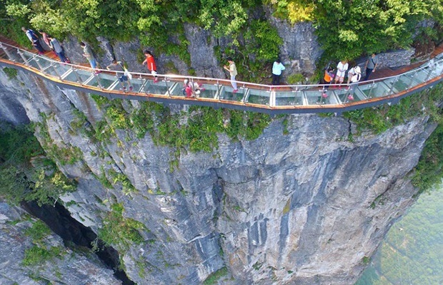 Nedavno otvoren most sa dnom od stakla „Nebeska avenija“, na planini Tjanmen na jugu Kine, izgrađen je oko litice i poziva znatiželjne posetioce da dožive osećaj hoda po vazduhu na visini od 1.400 metara. Izgrađen u sklopu Nacionalnog parka, most je napravljen od izdržljivog stakla koje posetiocima pruža utisak da hodaju po vazduhu.