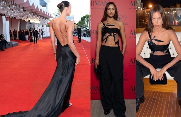 Planetarno poznata manekenka Irina Šajk uvek je primećena i često mnoge ostavi bez daha. Minulog vikenda bla je gošća filmskog festivala u Veneciji, a za ovu priliku odabrala je gotički glamurozni izgled, dok se crvenim tepihom prošetala u satenskoj crnoj slip haljini s otvorenim leđima. Drugo upečatljivo izdanje pokazala je na zabavi Đorđo Armani I Veniti Fer.