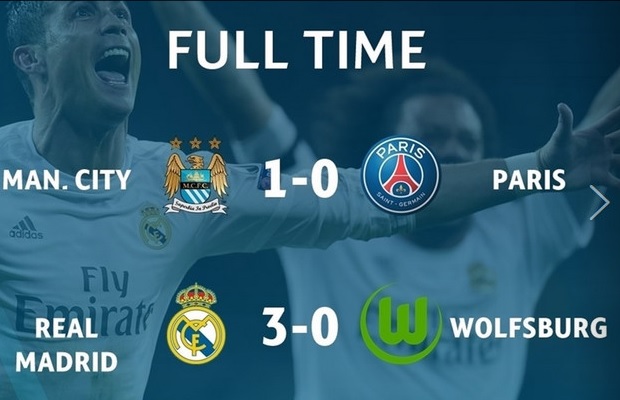 Fudbaleri madridskog Reala igraće šestu godinu zaredom u polufinalu Lige Šampiona, zahvaljujući fantastičnom Kristijanu Ronaldu, a tamo će im se pridružiti Mančester Siti, koji se prvi put u svojoj istoriji plasirao među najbolja četiri kluba u Evropi. Još jedno nezaboravno veče priredio je Ronaldo navijačima Reala. Već nakon 17 minuta igre, Portugalac je svojim golovima anulirao prednost Volfsburga iz prvog meča.