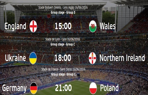 U okviru drugog kola EP u Francuskoj, danas su na programu jedna utkamica grupe B i dve grupe C. Od 15:00h sastaju se reprezentacije Engleske i Velsa. Od 18 časova sledi duel Ukrajine i Severne Irske, dok će snage odmeriti od 21 čas, reprezentacije Nemačke i Poljske. Nekoliko dnevnih novina u Ujedinjenom Kraljestvu osvanulo je danas sa naslovma preko celih strana: “Vels nas ne voli, ne volimo ni mi njih.”
