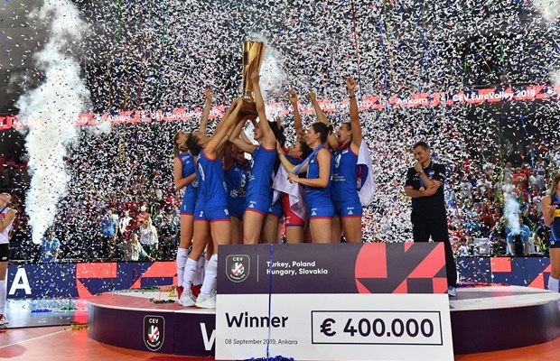 Zlatne odbojkašice Srbije danas popodne se vraćaju iz Turske i biće svečano dočekane u 21:00h, na čuvenom balkonu, ispred Skupštine grada Beograda. Srbija je sinoć u finalu Evropskog prvenstva pobedila Tursku sa 3:2 i obranila titulu evropskog šampiona.