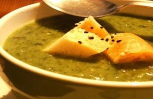 Potrebne namirnice – 1 manji koren celera, 2 srednja krompira, 1 manja glavica crnog luka, 3 kašike maslinovog ulja, 3 kašike brašna, so, biber, sok...