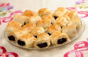 Potrebne namirnice – 1/2 kg tankih kora, 3/4 kg suvih šljiva , 1/4 kg samlevenih oraha, 2 šolje šećera i ulje. Priprema – Suve šljive...