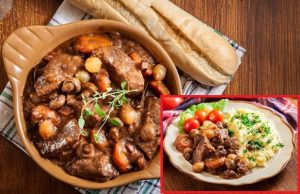 Potrebne namirnice – 600 g svinjskih šnicli, 70 g slanine, 3 sveže paprike, 2 paradajza, 1 šargarepa, 3 krompira, 3 glavice luka, 1 kašičica aleve...