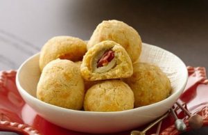 Potrebne namirnice – manje pakovanje maslina sa paprikom (oko 150 g), 200 g posnog kačkavalja, 200 g brašna, 1/2 margarina i susam (po želji).