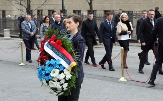 Predsednica Vlade Srbije, Ana Brnabić, praćena ministrima, položila je danas venac u dvorištu Vlade, gde je pre 16 godina ubijen Zoran Đinđić.