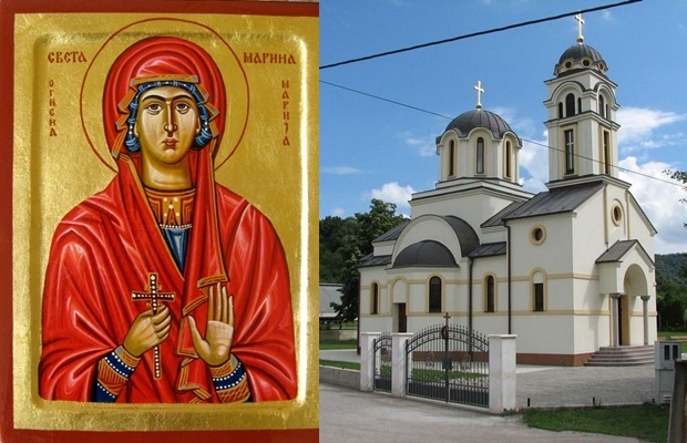 Sveta mučenica Marina rodom je iz Antiohije, krstila se u 12. godini i rano je ostala bez majke, a otac ju je, kada je saznao da je hrišćanka, oterao od kuće. Na putu iz Antiohije ona je srela eparha Olimvrija koji je pošao da goni hrišćane. Pošto je odbila ponuđeni brak i zbog njene vere u Gospoda Isusa Hrista, gnevni eparh naredi da je izlože najgorim mukama. Sveta velikomučenica Marina posečena je mačem u 16. godini, u doba cara Dioklecijana. Mošti ove svetiteljke nalazile su se u Carigradu do dolaska krstaša, a danas se njena ruka nalazi u svetogorskom manastiru Vatopedu. U manastiru Svete Marine u Albaniji, na planini Longa iznad Ohridskog jezera, počivaju njene čudotvorne i svete mošti, koje posećuju i klanjaju im se i pravoslavni i muslimani.