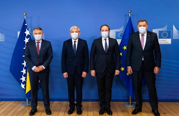 Članovi Predsedništva BiH (P BiH) Milorad Dodik, Željko Komšić i Šefik Džaferović sastali su se danas u Briselu sa predsednikom Evropskog parlamenta Davidom Sasolijem, komesarom za evropsku politiku susedstva i pregovore o proširenju Oliverom Varheljem i potpredsednikom Evropske komisije zaduženim za spoljne poslove Žozefom Boreljom. Varhelji je pozdravio posvećenost članova P BiH implementaciji 14 ključnih prioriteta Evropske komisije kako bi BiH brzo napredovala ka statusu kandidata za članstvo u Uniji.