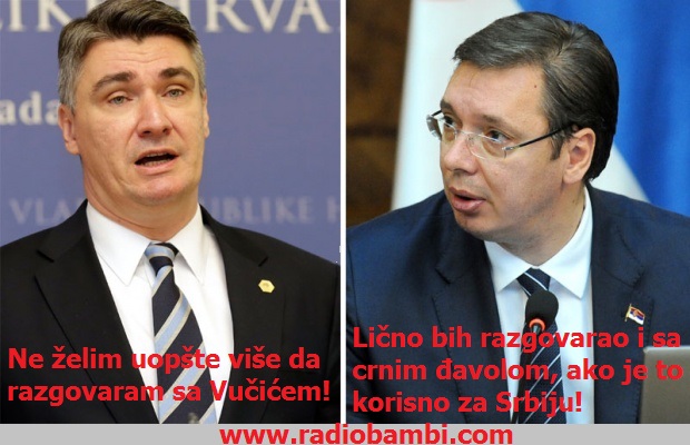 Premijer Srbije Aleksandar Vučić izjavio je danas da bi razgovarao i sa crnim đavolom ako je to korisno za Srbiju i regionalnu stabilnost, za dobre i prijateljske odnose među narodima i državama. Vučić je povodom izjave hrvatskog kolege Zorana Milanovića, koji je rekao da uopšte više ne želi da razgovara sa Vučićem, kazao da mu je zbog toga žao, te da je Srbija uvek spremna na razgovore zarad regionalne stabilnosti i prijateljskih odnosa među narodima i državama. Njegova lična, kao i politika Vlade Srbije je, ističe, da sa svima razgovaraju.