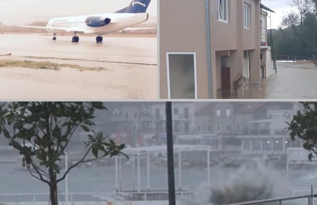 Sa poplavama usled jake kiše i olujnog nevremena bore se i u Tivtu. Zbog velike količine vode koja se izlila na magistralni put, deo Jadranske magistrale pored aerodrorma zatvoren je za saobraćaj. Ipak, kako javljaju crnogorski mediji, autobusima i teretnim vozilima policija dozvoljava prolaz Jadranskom magistralom pored aerodroma, dok prolaz još uvek nije dozvoljen za manja vozila. Svi letovi i u odlascima i dolascima su zbog jakog nevremena, smanjene vidljivosti i veće količine vode na pisti, preusmereni na podgorički aerodrom, potvrđeno je sa Aerodroma Tivat.