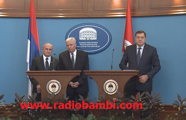 Lideri SNSD-a Milorad Dodik, DNS-a Marko Pavić i Socijalističke partije, Petar Đokić smatraju da je mnogima stalo da se destabilizuje rad institucija Republike Srpske. Rešenje je, kažu, u kontinuiranim razgovorima institucija Srpske i njenih predstavnika u Sarajevu. Od srpskih predstavnika u Sarajevu traže da odustanu od formiranja takozvanog Fonda za investicije BiH, jer ga smatraju štetnim po ekonomske interese Srpske.