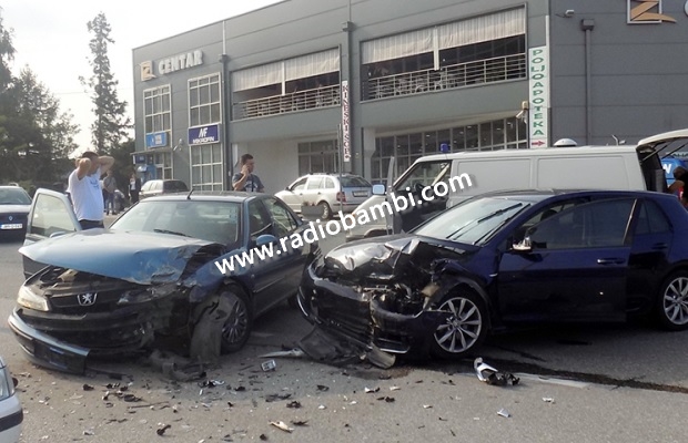 Povređeni su vozač golfa i putnica u pežou M.M, a pomoć im je ukazana u vlaseničkom Domu zdravlja. Nesreća se dogodila juče oko 16:30h.